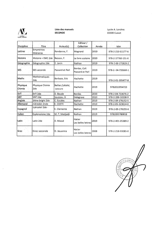 Listes Manuels Lycée 2020